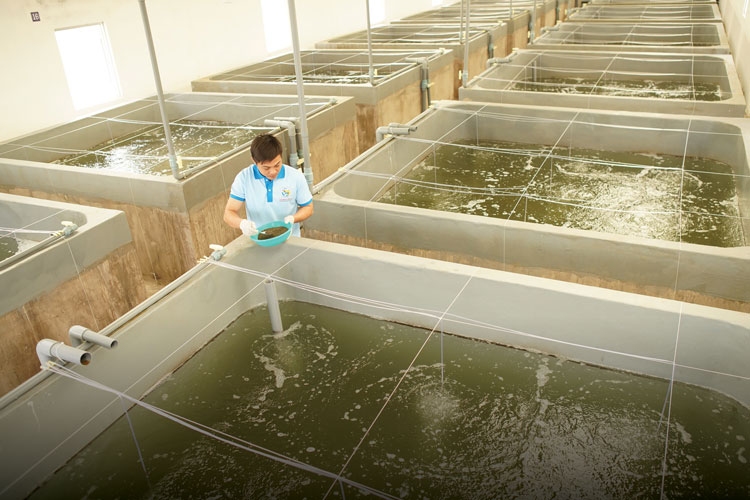 Duy trì ổn định: Kiểm soát chặt chẽ các chỉ số pH, độ mặn, nhiệt độ và mật độ vi khuẩn Vibrio để tạo môi trường lý tưởng nhất cho ấu trùng phát triển.